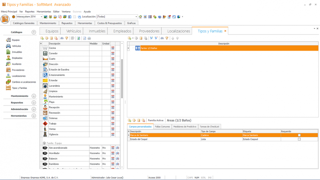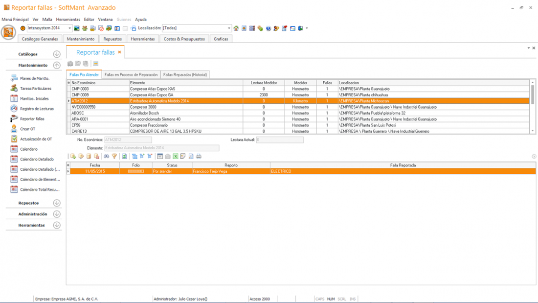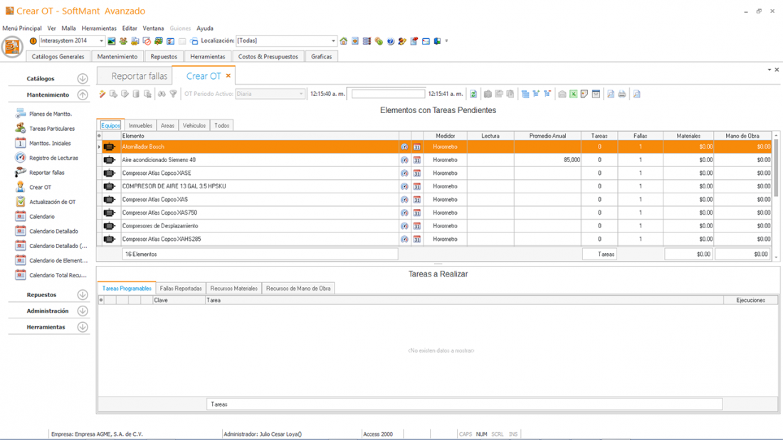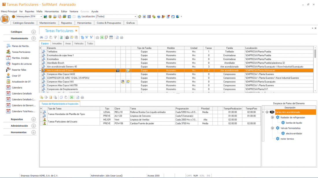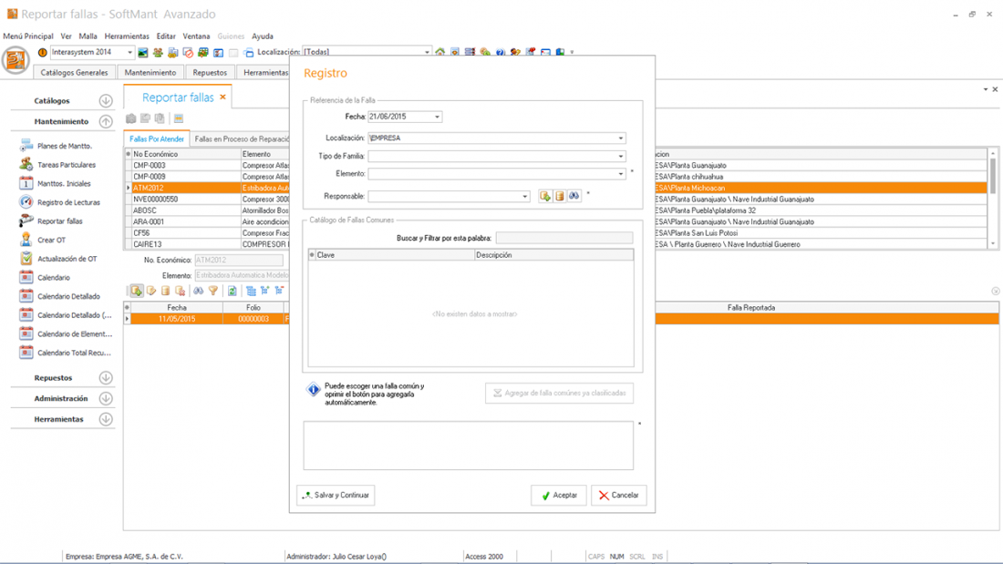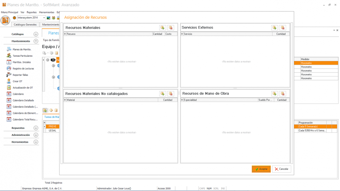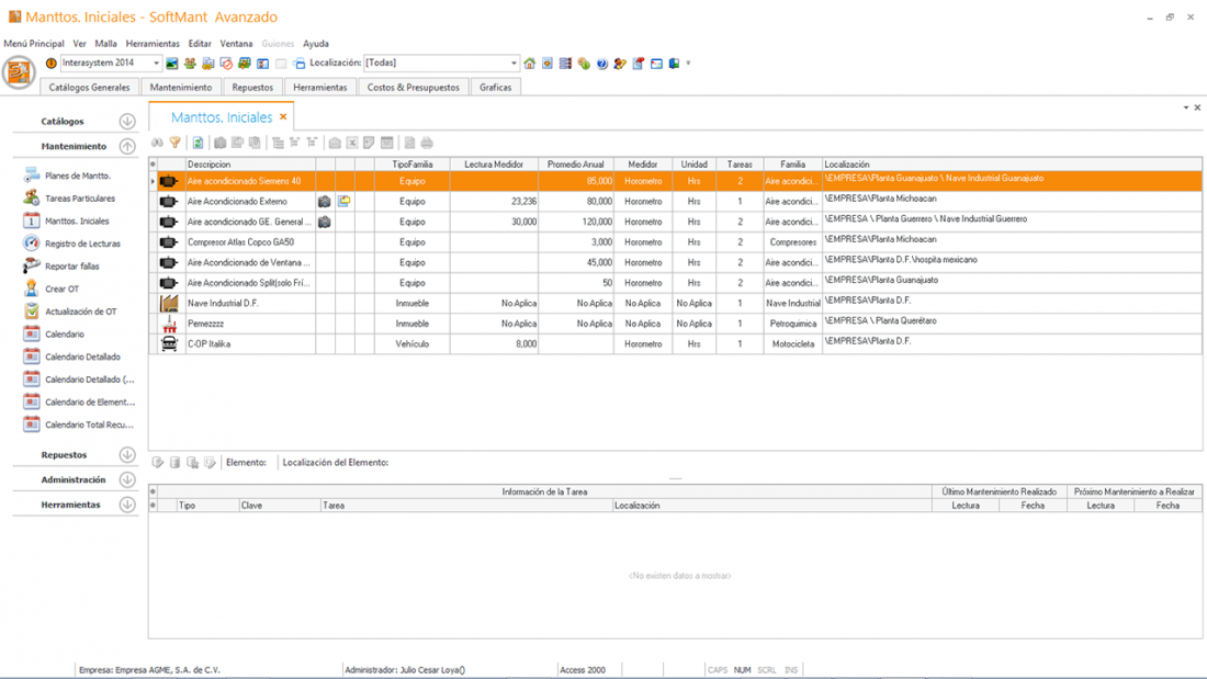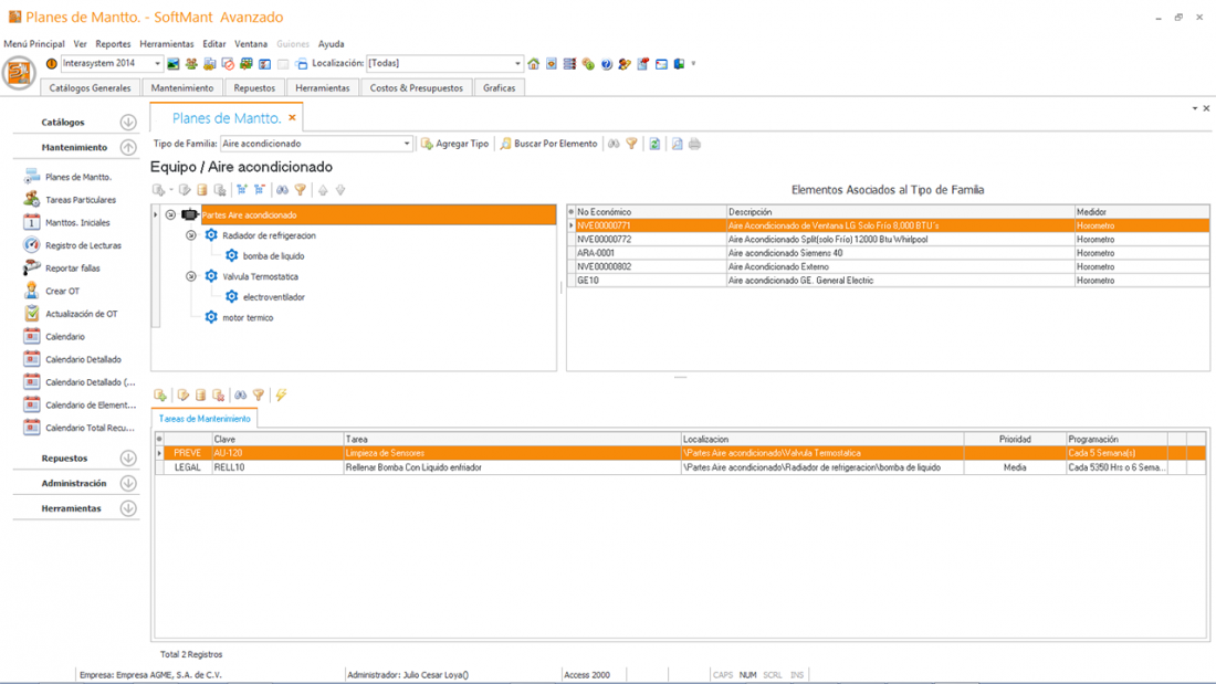 - Creación de planes de mantenimiento por Tipo de Elemento y Familia.