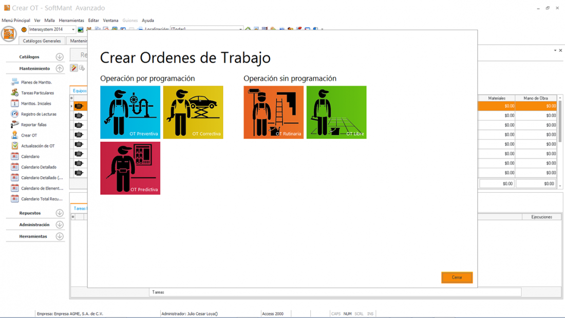 SoftMant2 Viene con un Generador de Ordenes de Trabajo muy eficiente que tiene las diferentes modalidades para poder crear una Orden de Trabajo, el sistema maneja varias Tipo de Ordenes: