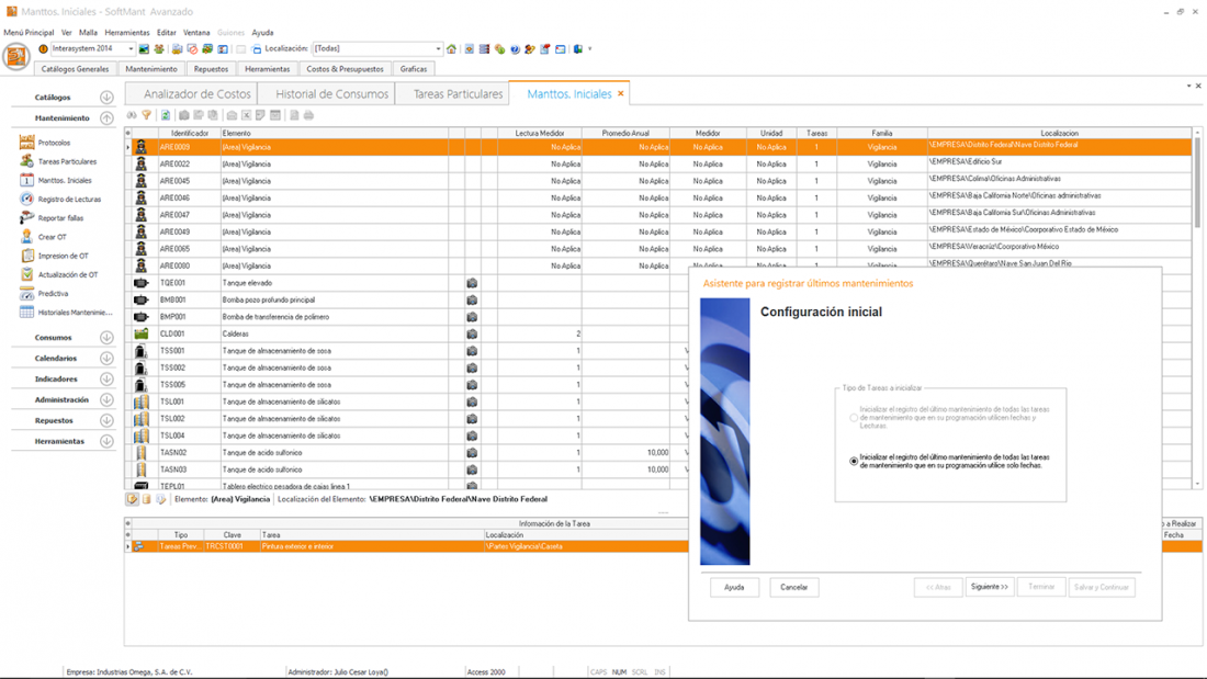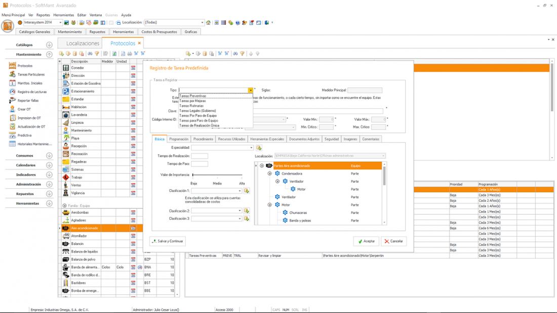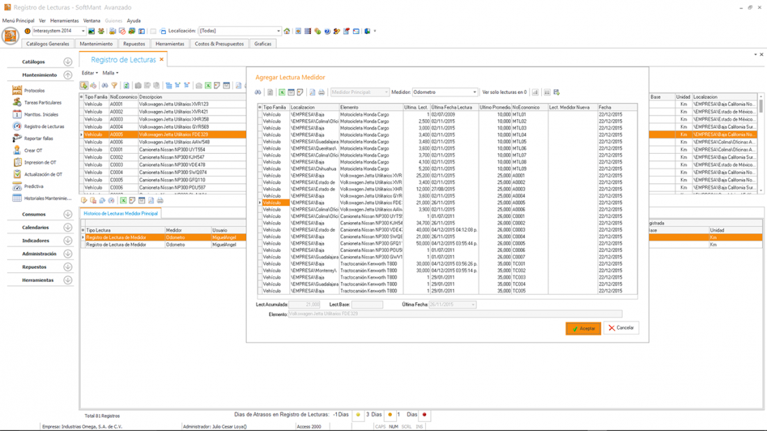 En este módulo actualizamos las lecturas que fueron programadas en el protocolo de mantenimiento como tareas predictiva, las mediciones de predictivos son utilizados para poder detectar algún problema de algún equipo antes de que falle, normalmente este tipo de mediciones se realiza con medidores especializados como termógrafos, osciloscopios, volt-amperímetros que detectan variación comparándolas contra los valores normales o críticos estos valores son registrados en el SoftMant para que en momento que se registre un valor que se sale de los valores óptimos de operación dispare una alarma que es enviada a un correo electrónico para tomar acciones, hay dos de valoración el máximo el mínimo el crítico máximo y el crítico mínimo estos parámetros se valoran cuando el tomador de lectura la registra y realiza las acciones correspondientes.