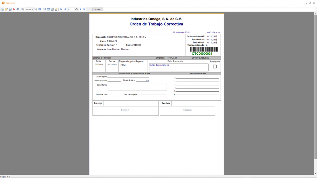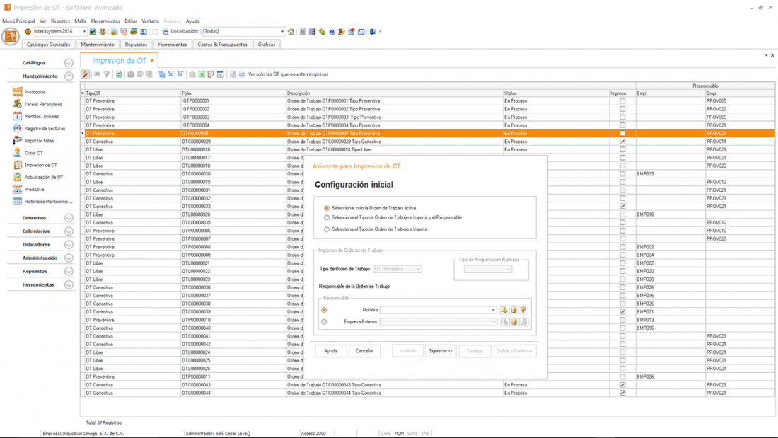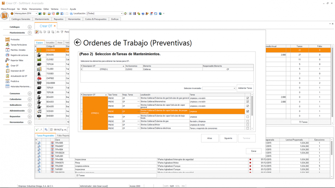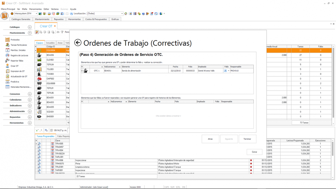 Posterior a esto en la creación de la Orden de trabajo el operador de mantenimiento debe revisar la Ordenes de Trabajo Pro Activas que sirven para resolver el problema antes que llegue a provocar un paro y correctivo.